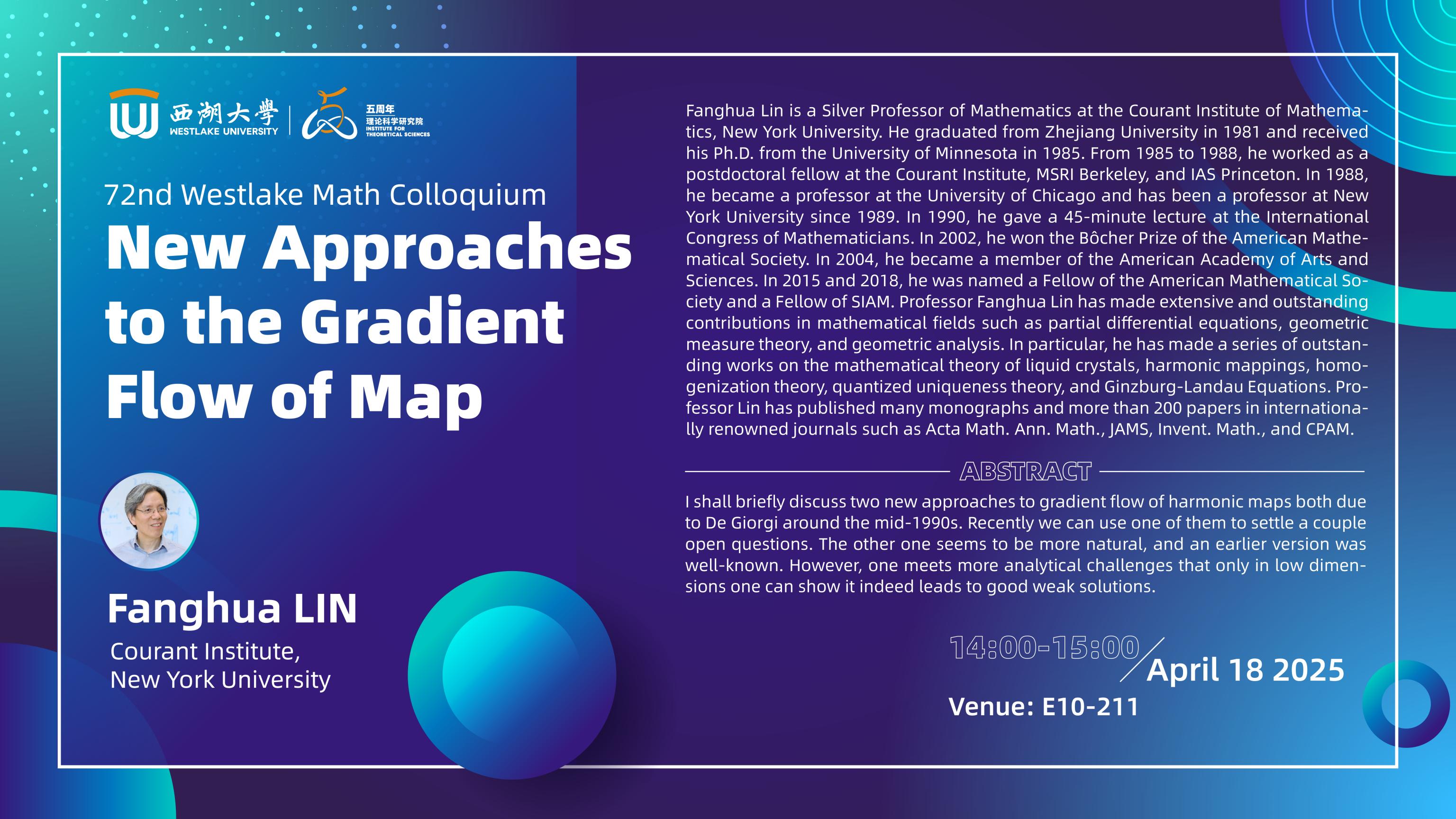 Biography: Fanghua Lin is a Silver Professor of Mathematics at the Courant Institute of Mathematics, New York University. He graduated from Zhejiang University in 1981 and received his Ph.D. from the University of Minnesota in 1985. From 1985 to 1988, he worked as a postdoctoral fellow at the Courant Institute, MSRI Berkeley, and IAS Princeton. In 1988, he became a professor at the University of Chicago and has been a professor at New York University since 1989. In 1990, he gave a 45-minute lecture at the International Congress of Mathematicians. In 2002, he won the Bôcher Prize of the American Mathematical Society. In 2004, he became a member of the American Academy of Arts and Sciences. In 2015 and 2018, he was named a Fellow of the American Mathematical Society and a Fellow of SIAM. Professor Fanghua Lin has made extensive and outstanding contributions in mathematical fields such as partial differential equations, geometric measure theory, and geometric analysis. In particular, he has made a series of outstanding works on the mathematical theory of liquid crystals, harmonic mappings, homogenization theory, quantized uniqueness theory, and Ginzburg-Landau Equations. Professor Lin has published many monographs and more than 200 papers in internationally renowned journals such as Acta Math. Ann. Math., JAMS, Invent. Math., and CPAM.